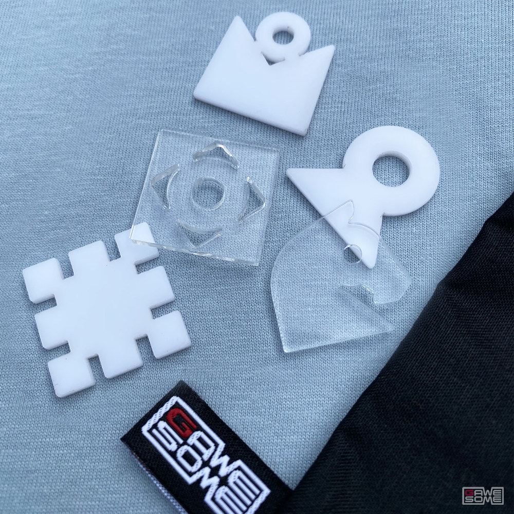 SAKK doboz tartalma 1 Gawesome Sakk póló | Minta hátul 32 bábu: 16 fehér + 16 átlátszó 1 bábu tartó vászontáska + játékszabály
